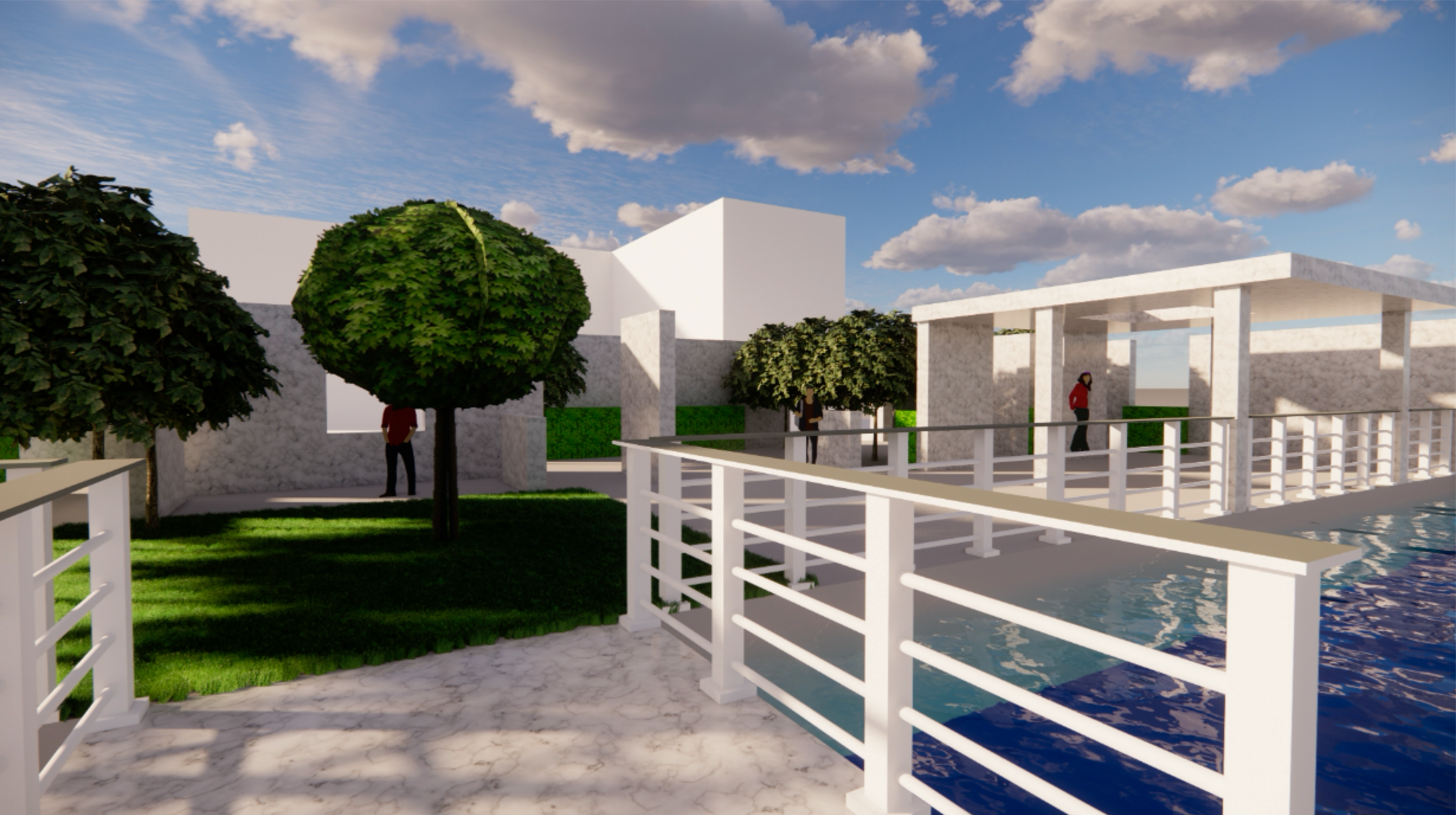 Vegetation & Water: The strategic placement of trees, shrubs, and water elements enhances the sensory experience, balancing enclosed and open spaces while fostering a tranquil atmosphere.