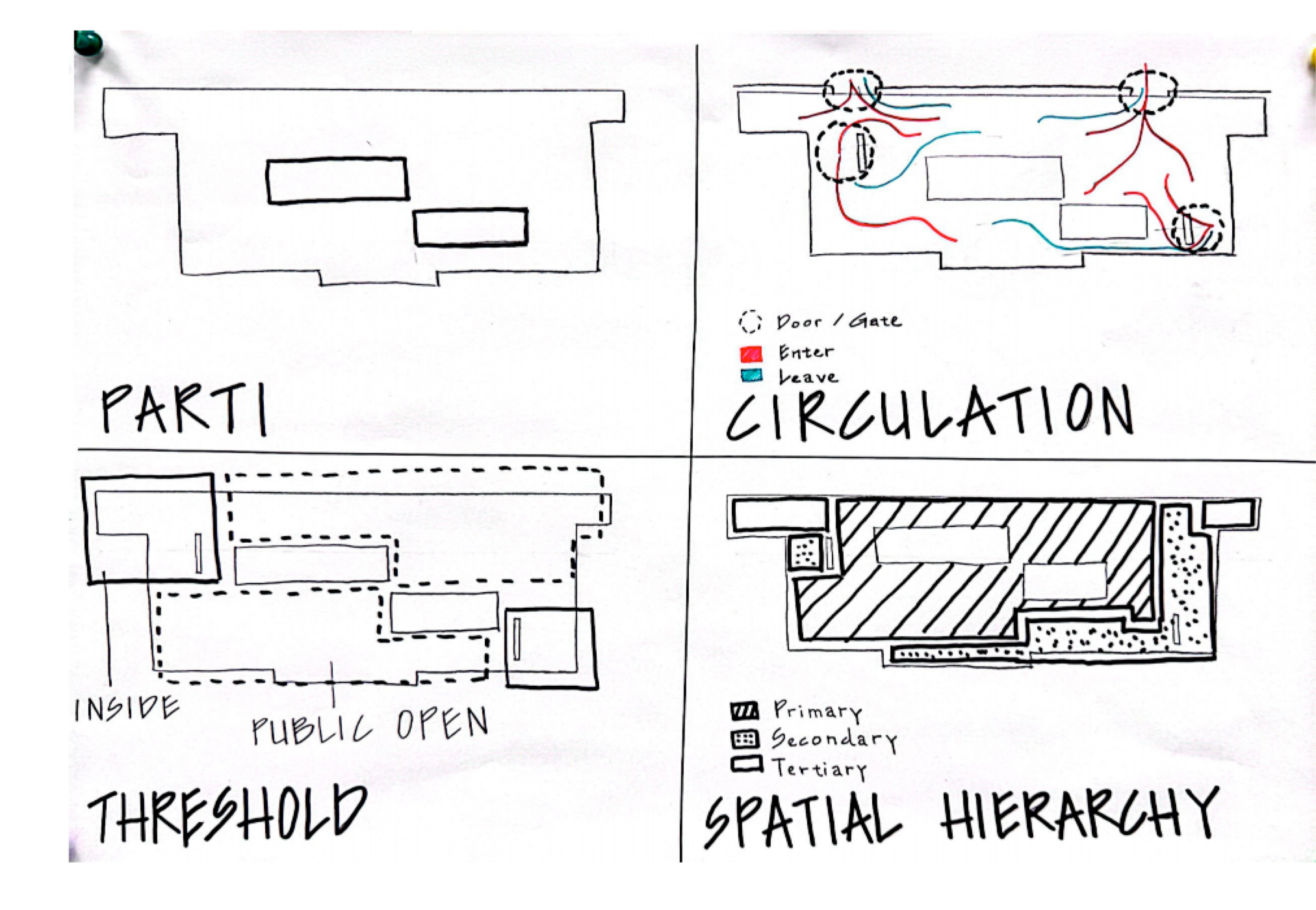 Thresholds & Spatial Hierarchy: Clear zoning differentiates public, semi-public, and enclosed areas, ensuring a dynamic yet cohesive experience. The spatial hierarchy defines how primary, secondary, and tertiary spaces interact to create depth and engagement within the garden.